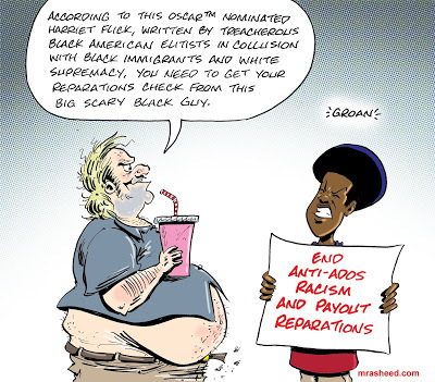 Rasheed, Muhammad. "Defusing Racism’s Marketing Arm." Cartoon. The Official Website of Cartoonist M. Rasheed 23 Feb 2020. Pen & ink w/Adobe Photoshop color.