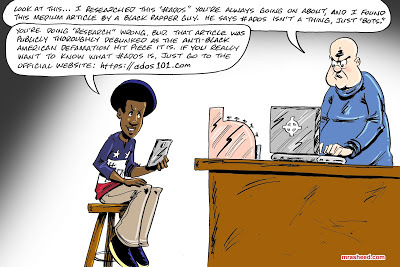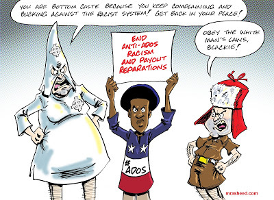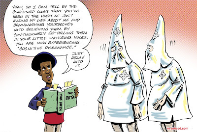 Rasheed, Muhammad. "Racism’s Front Line of Defense." Cartoon. The Official Website of Cartoonist M. Rasheed 23 Feb 2020. Pen & ink w/Adobe Photoshop color.