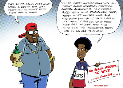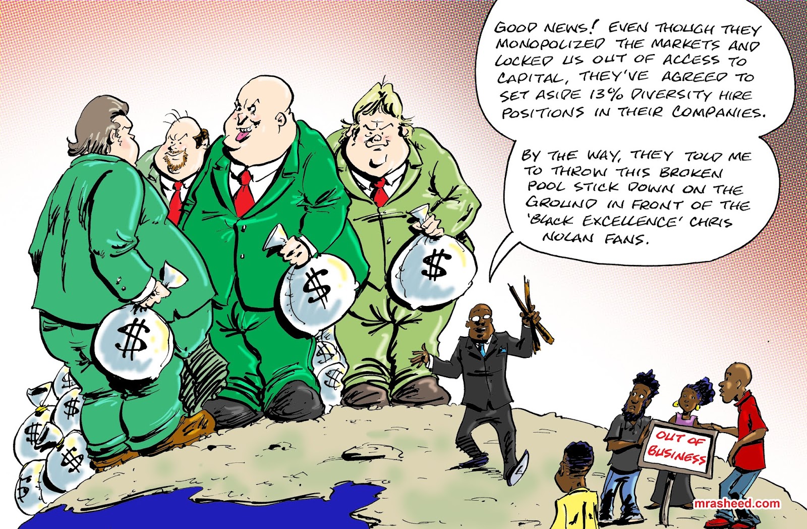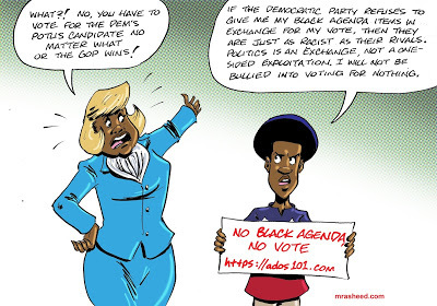 Rasheed, Muhammad. "Political Arm of Black American Liberation." Cartoon. The Official Website of Cartoonist M. Rasheed 14 Feb 2020. Pen & ink w/Adobe Photoshop color.