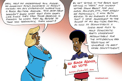 Rasheed, Muhammad. "Call to Strengthen the Political Arm of Black Liberation." Cartoon. The Official Website of Cartoonist M. Rasheed 16 Feb 2020. Pen & ink w/Adobe Photoshop color.