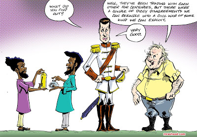 Rasheed, Muhammad. "A Fool's Deal." Cartoon. The Official Website of Cartoonist M. Rasheed 16 Feb 2020. Pen & ink w/Adobe Photoshop color.