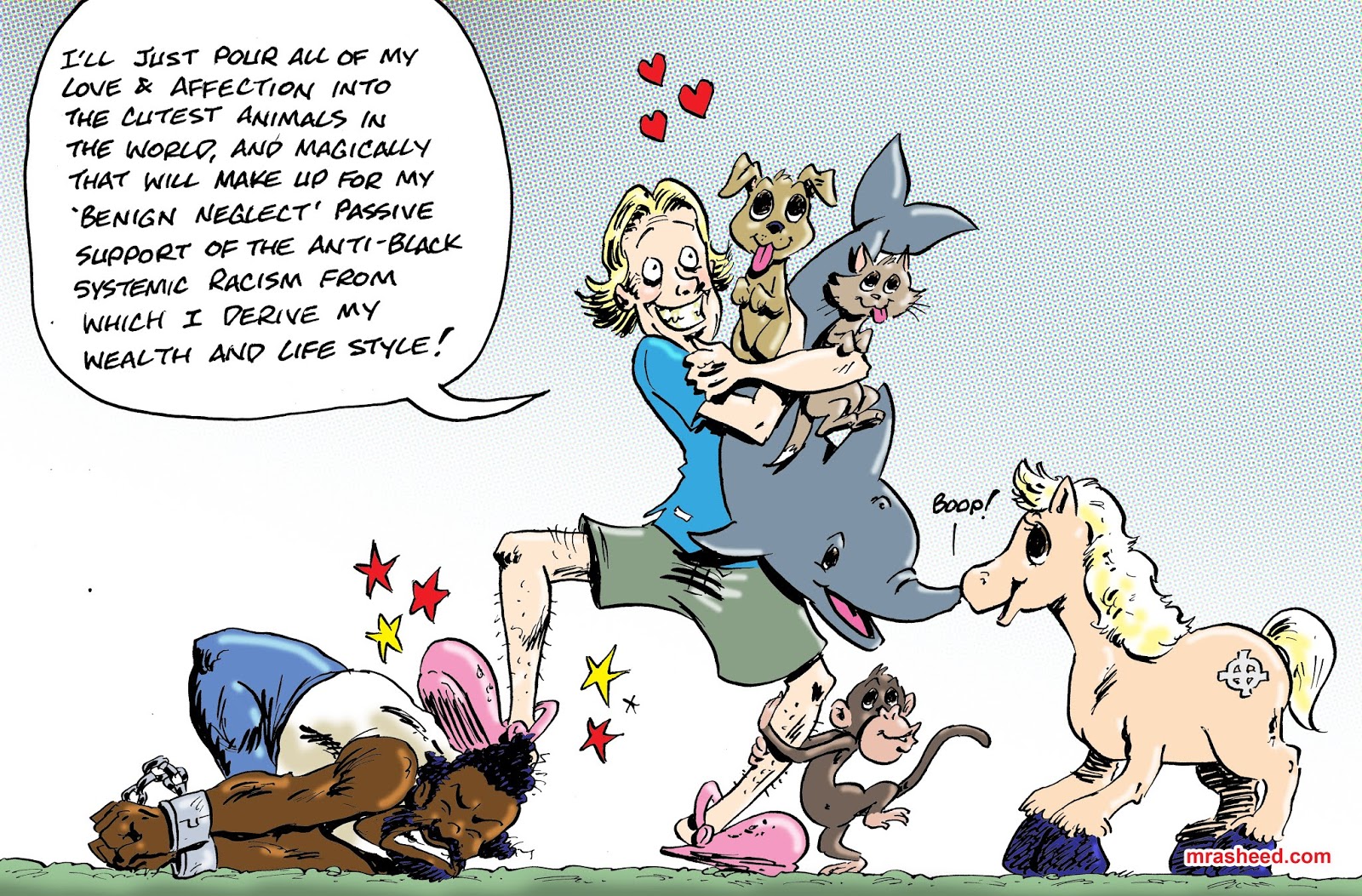 Rasheed, Muhammad. "Loophole: How to Be a 'Good Person' in the White Supremacy Era." Cartoon. The Official Website of Cartoonist M. Rasheed 12 Jan 2020. Pen & ink w/Adobe Photoshop color.