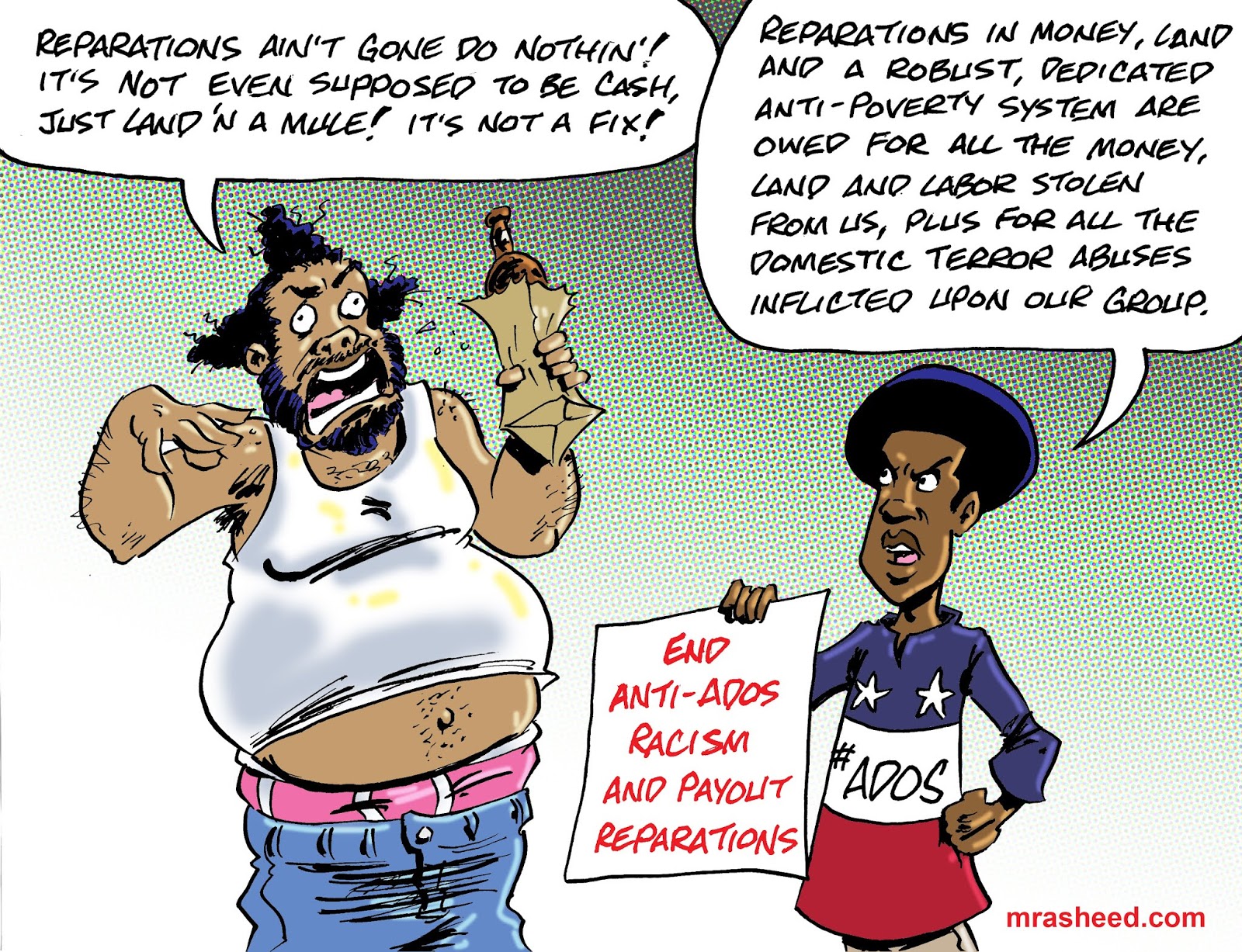 Rasheed, Muhammad. "All Roads Lead to ADOS Reparations." Cartoon. The Official Website of Cartoonist M. Rasheed 14 Jan 2020. Pen & ink w/Adobe Photoshop color.