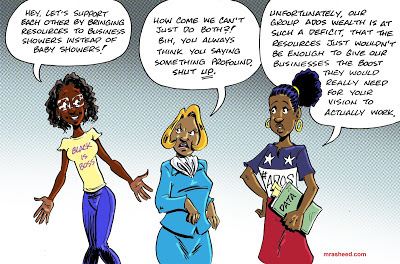 Rasheed, Muhammad. "Maximizing Profits in a 'Diverse' White-Owned Monopoly." Cartoon. The Official Website of Cartoonist M. Rasheed 16 Jan 2020. Pen & ink w/Adobe Photoshop color.