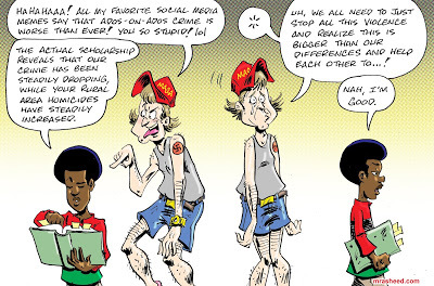 Rasheed, Muhammad. "The Narrowed Focus of Self-Preservation." Cartoon. The Official Website of Cartoonist M. Rasheed 05 Dec 2019. Pen & ink w/Adobe Photoshop color.