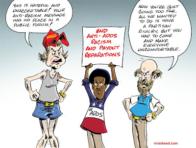 Rasheed, Muhammad. "Trying to Have Your Racist Cake While Eating It, Too." Cartoon. The Official Website of Cartoonist M. Rasheed 06 Dec 2019. Pen & ink w/Adobe Photoshop color.
