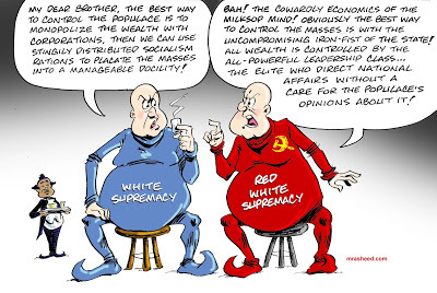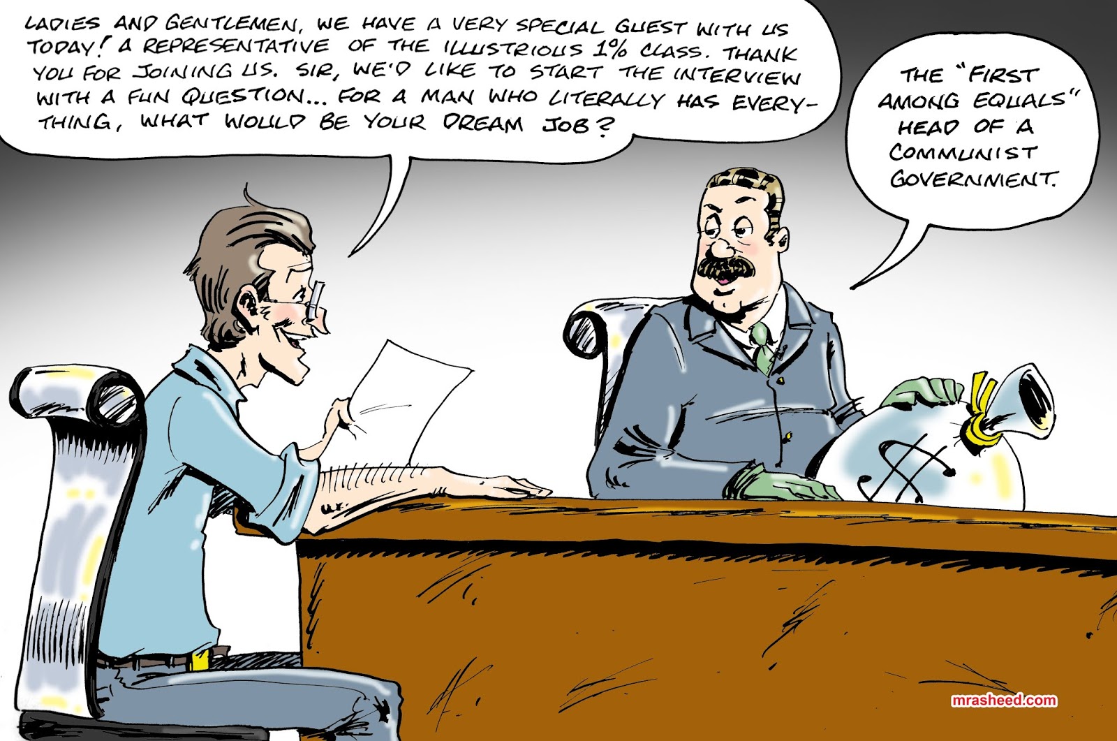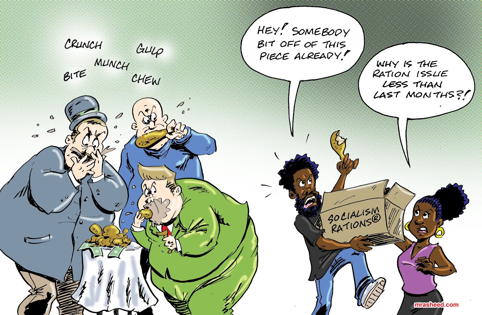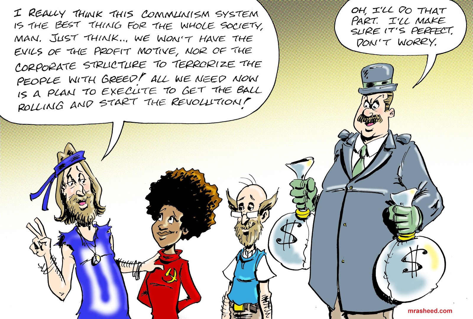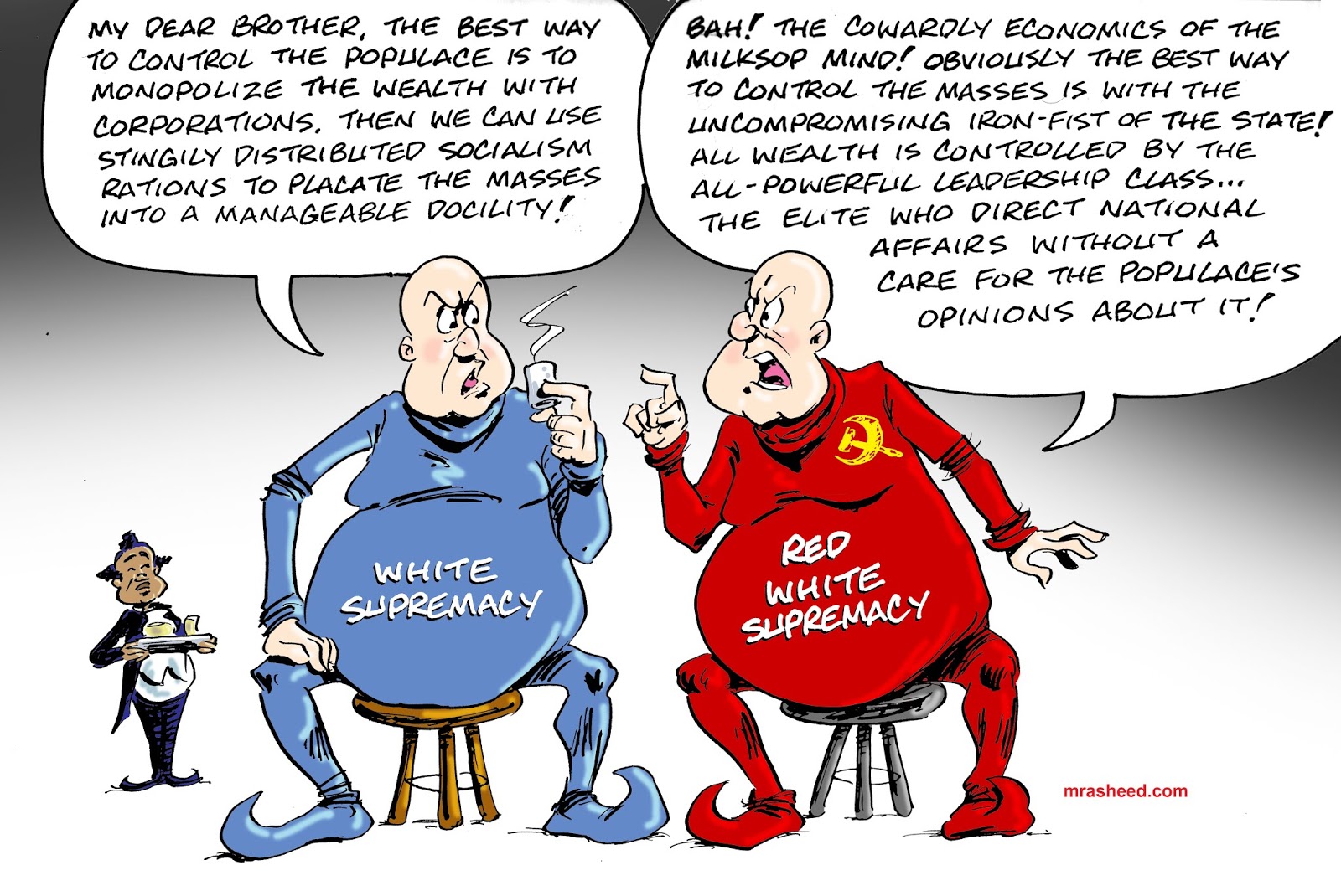 Rasheed, Muhammad. "Crony Corporatism vs Communism." Cartoon. The Official Website of Cartoonist M. Rasheed 11 Sep 2019. Pen & ink w/Adobe Photoshop color.