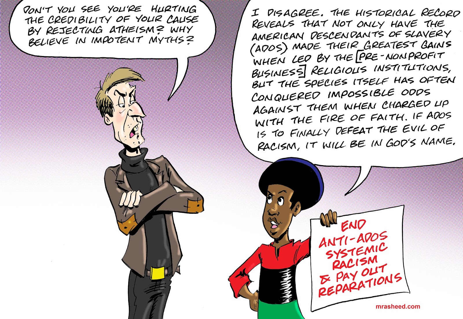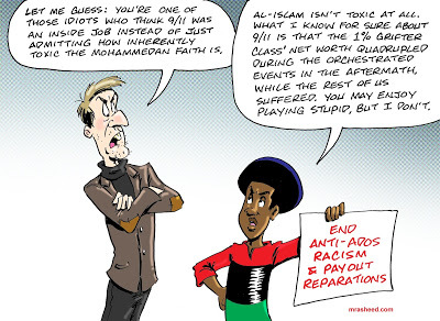 Rasheed, Muhammad. "A Characteristic Attack by the Pseudo-Intellectual." Cartoon. The Official Website of Cartoonist M. Rasheed 18 Sep 2019. Pen & ink w/Adobe Photoshop color.