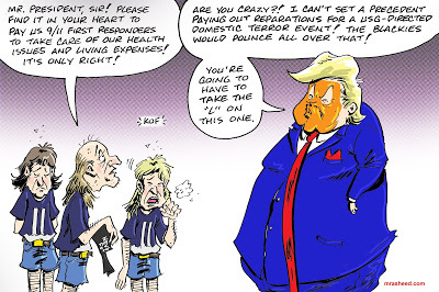 Rasheed, Muhammad. "The Follow Through." Cartoon. The Official Website of Cartoonist M. Rasheed 16 Sep 2019. Pen & ink w/Adobe Photoshop color.