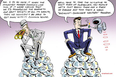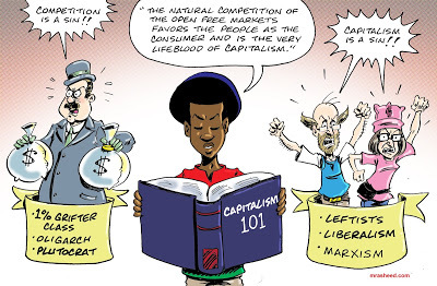 Capitalism needs competition in order to work, while the bad guys cut off competition so all revenue will funnel to their little class alone. A multi-millionaire or billionaire class isn't possible under a well-regulated capitalist open free market competition. The signs are right in front of you.