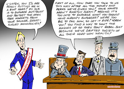 Exactly. There would be no 1%... no billionaire class... if it weren't for those greedy assholes warring against capitalism. Starting with J.D. Rockefeller's Standard Oil, they are the reason antitrust laws were created (see: the history leading up to the passing of the so-called Sherman Act), because of their thirst for monopolizing the open free markets capitalism needs in order to function.