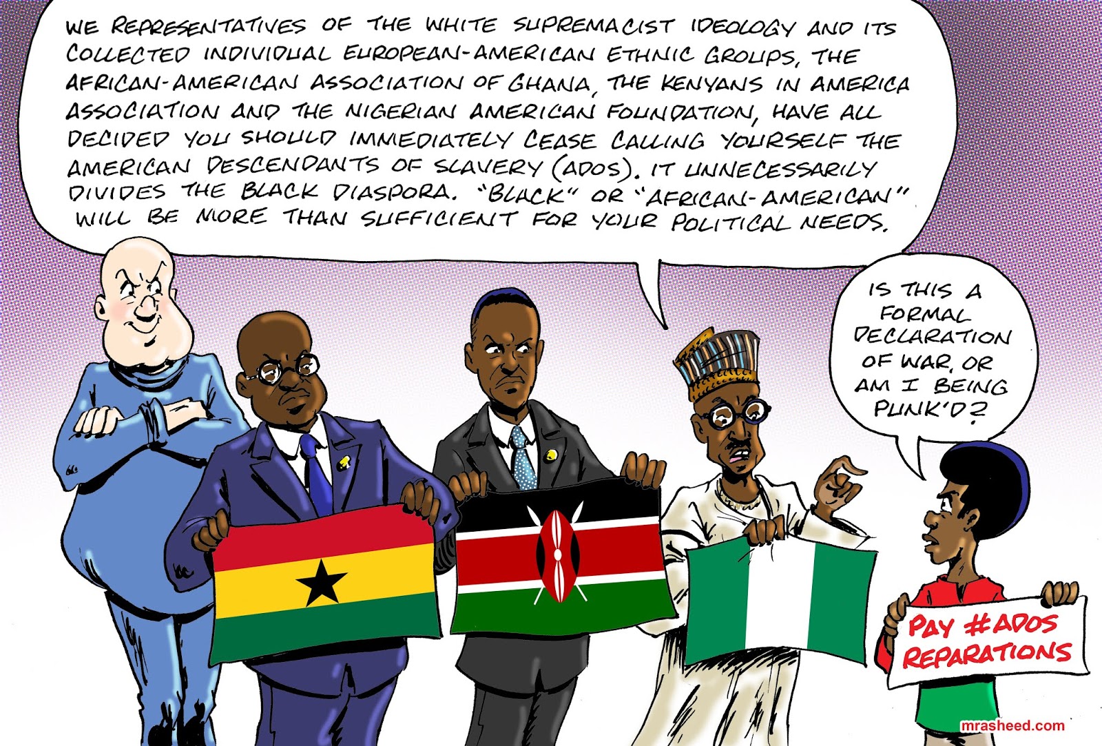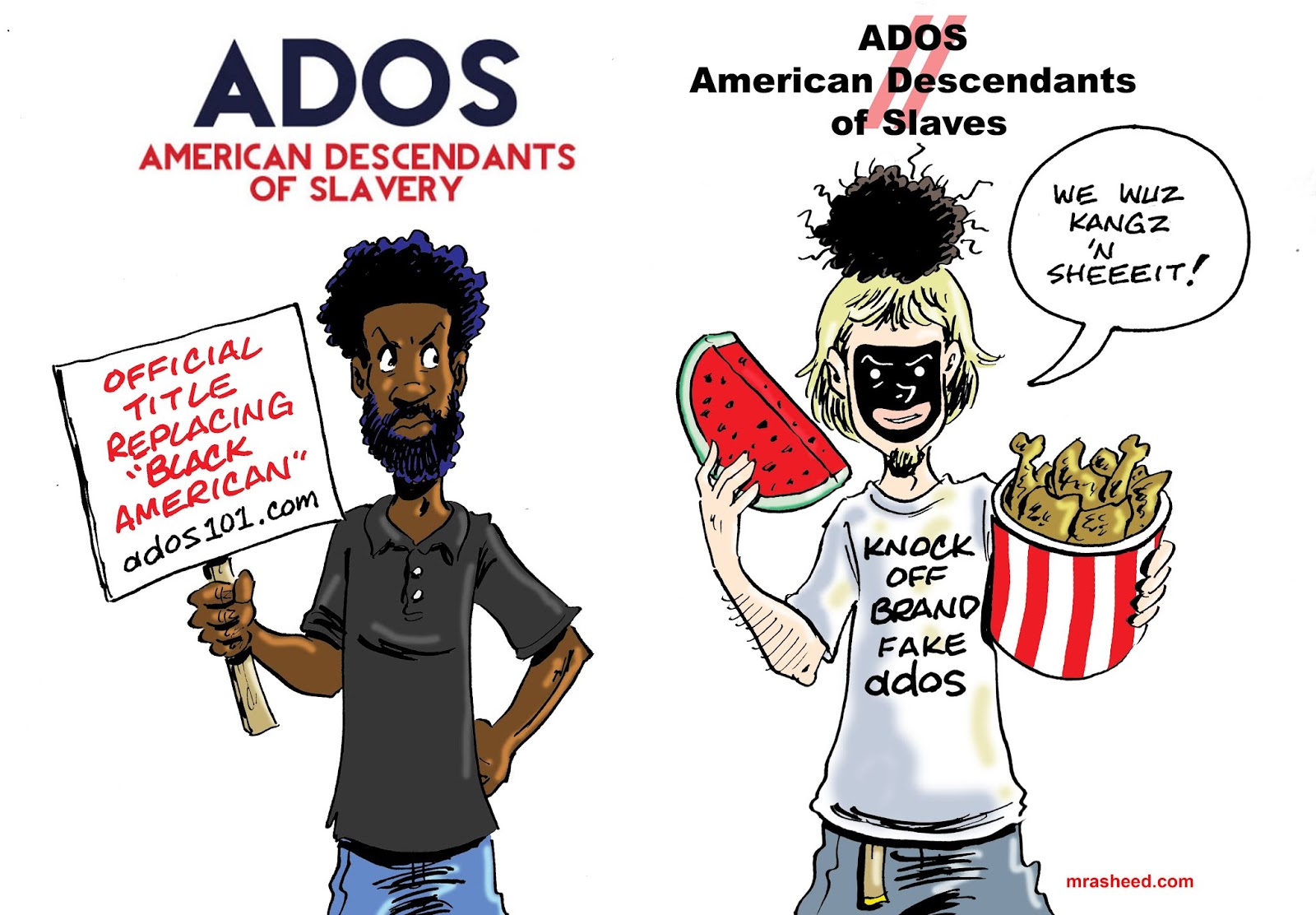 As the impressive anti-racism activist duo Yvette Carnell and Antonio Moore successfully get the 2020 presidential candidates to discuss the Reparations Black Political Agenda bullet on the national stage, they have pushed the label American Descendants of Slavery (ADOS) as a more accurate name for the ethnic group, aligned to lineage and heritage. Conspicuously, while pretending to be subject matter experts on ADOS, we find several white people online giving lengthy explanations of what ADOS is all about while using the deceptively different “American Descendants of Slaves.” The distinction is deliberate as the knock-off brand of the American Descendants of Slavery (ADOS) because they are preparing their grift-swindle beforehand just in case the U.S. government really does pay out Reparations. They have already admitted (because they talk too much in typical villain monologuing) that their knock-off brand ‘American Descendants of Slaves’ means “whites who could prove they had slave ancestors somewhere in the world.”