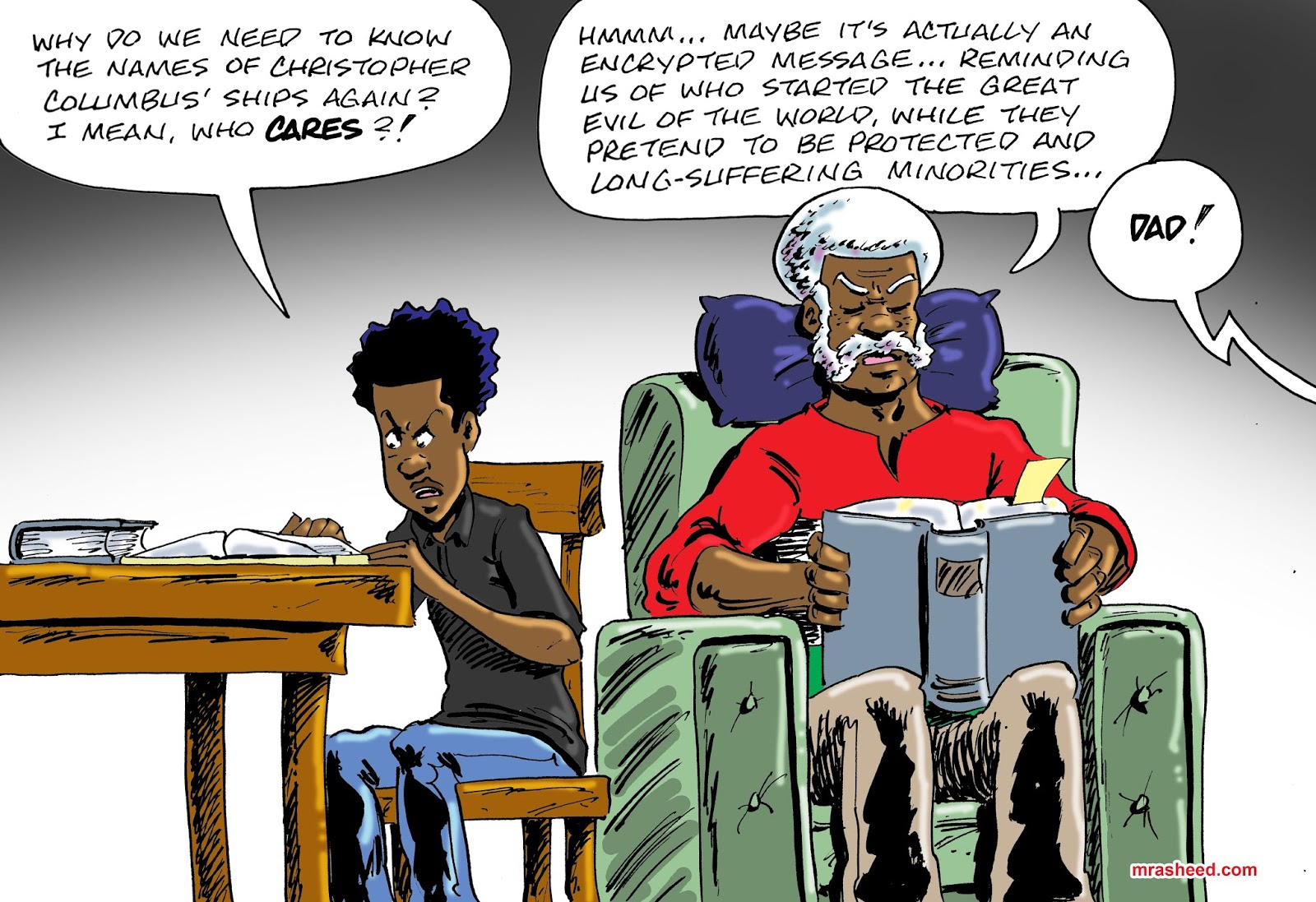 Rasheed, Muhammad. "Hurdles to the Elusive Black Unity." Cartoon. The Official Website of Cartoonist M. Rasheed 25 Aug 2019. Pen & ink w/Adobe Photoshop color.