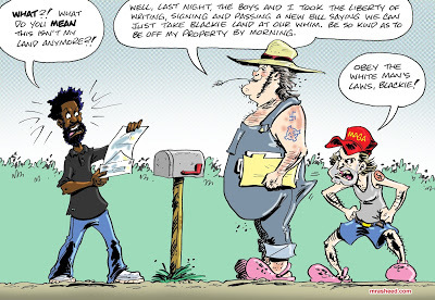 Rasheed, Muhammad. "Racism's Version of 'Honesty.'" Cartoon. The Official Website of Cartoonist M. Rasheed 19 Aug 2019. Pen & ink w/Adobe Photoshop color.