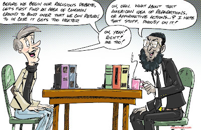 Rasheed, Muhammad. "[TAINTED WITNESS] A Canadian Christian versus an Egyptian-Arab Brit Muslim." Cartoon. The Official Website of Cartoonist M. Rasheed 06 Nov 2022. Permanent marker w/Adobe Photoshop color.