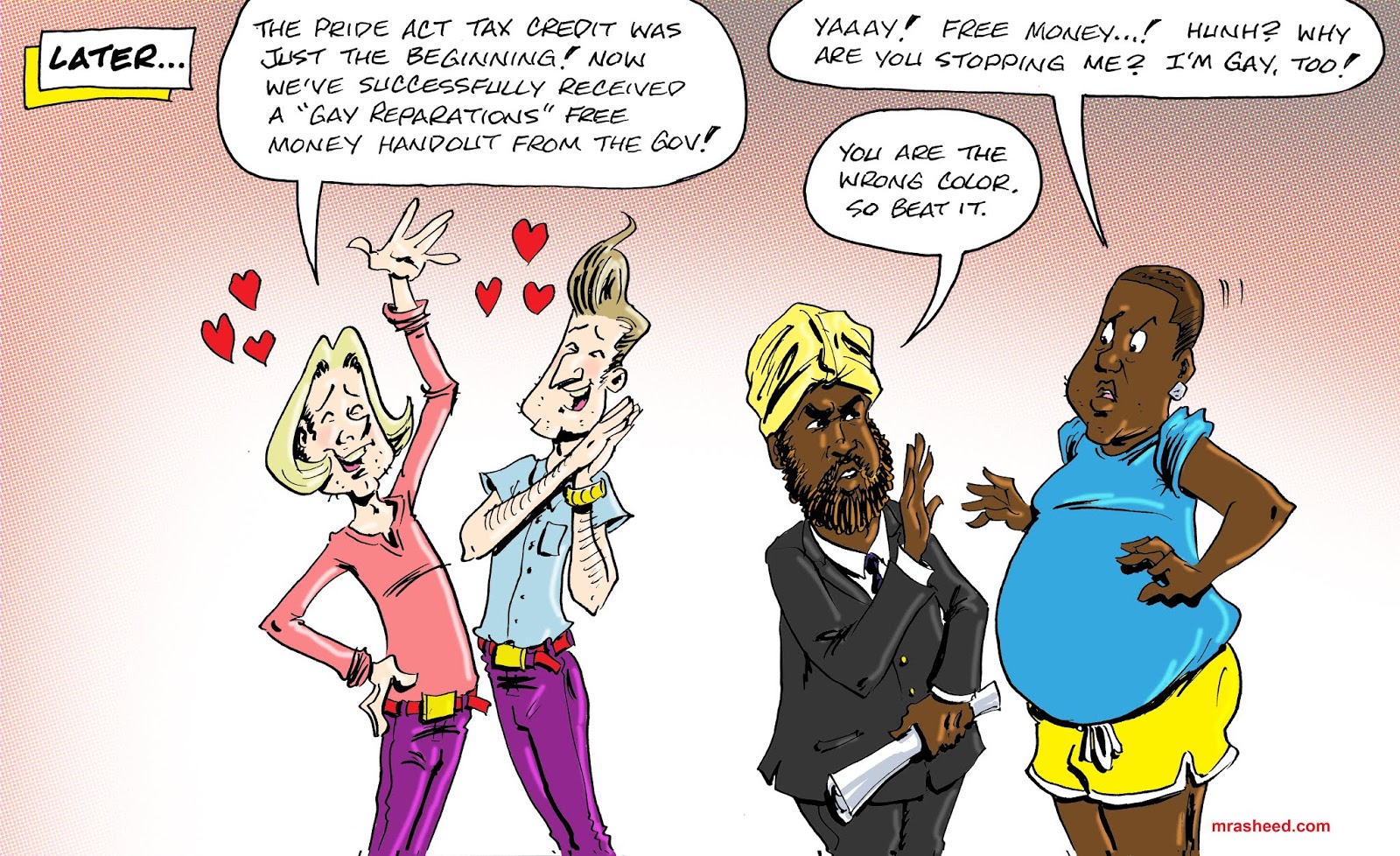 Rasheed, Muhammad. "The Exclusive White Male Homosexual Club." Cartoon. The Official Website of Cartoonist M. Rasheed 03 Aug 2019. Pen & ink w/Adobe Photoshop color.