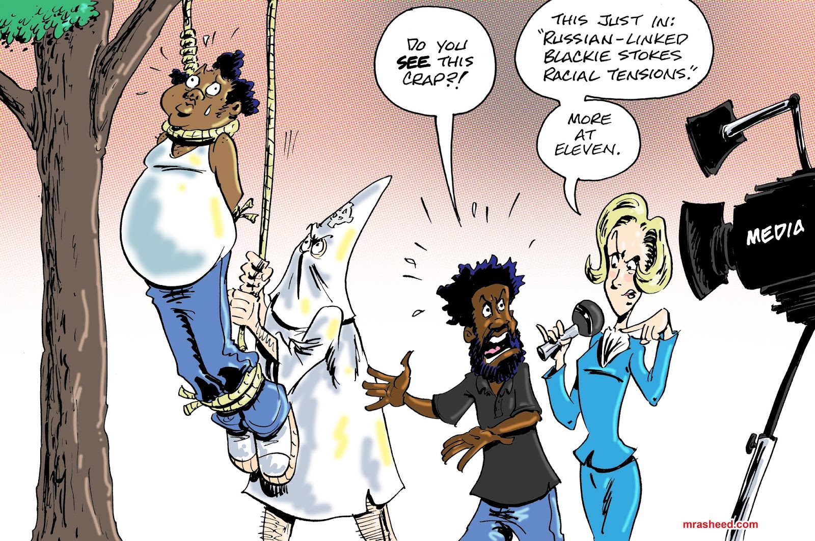 Rasheed, Muhammad. "Passionate Ignorance of the Racist." Cartoon. The Official Website of Cartoonist M. Rasheed 06 Aug 2019. Pen & ink w/Adobe Photoshop color.
