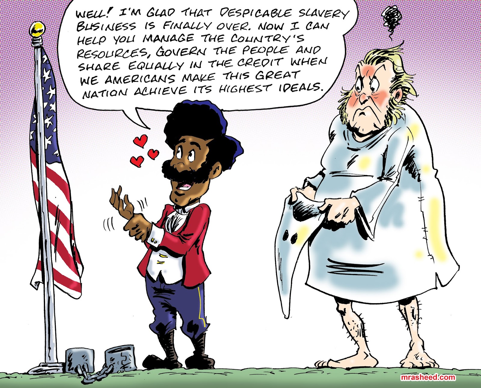 Rasheed, Muhammad. "White Supremacy's Problems with Change." Cartoon. The Official Website of Cartoonist M. Rasheed 12 Jul 2019. Pen & ink w/Adobe Photoshop color.