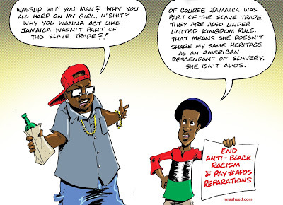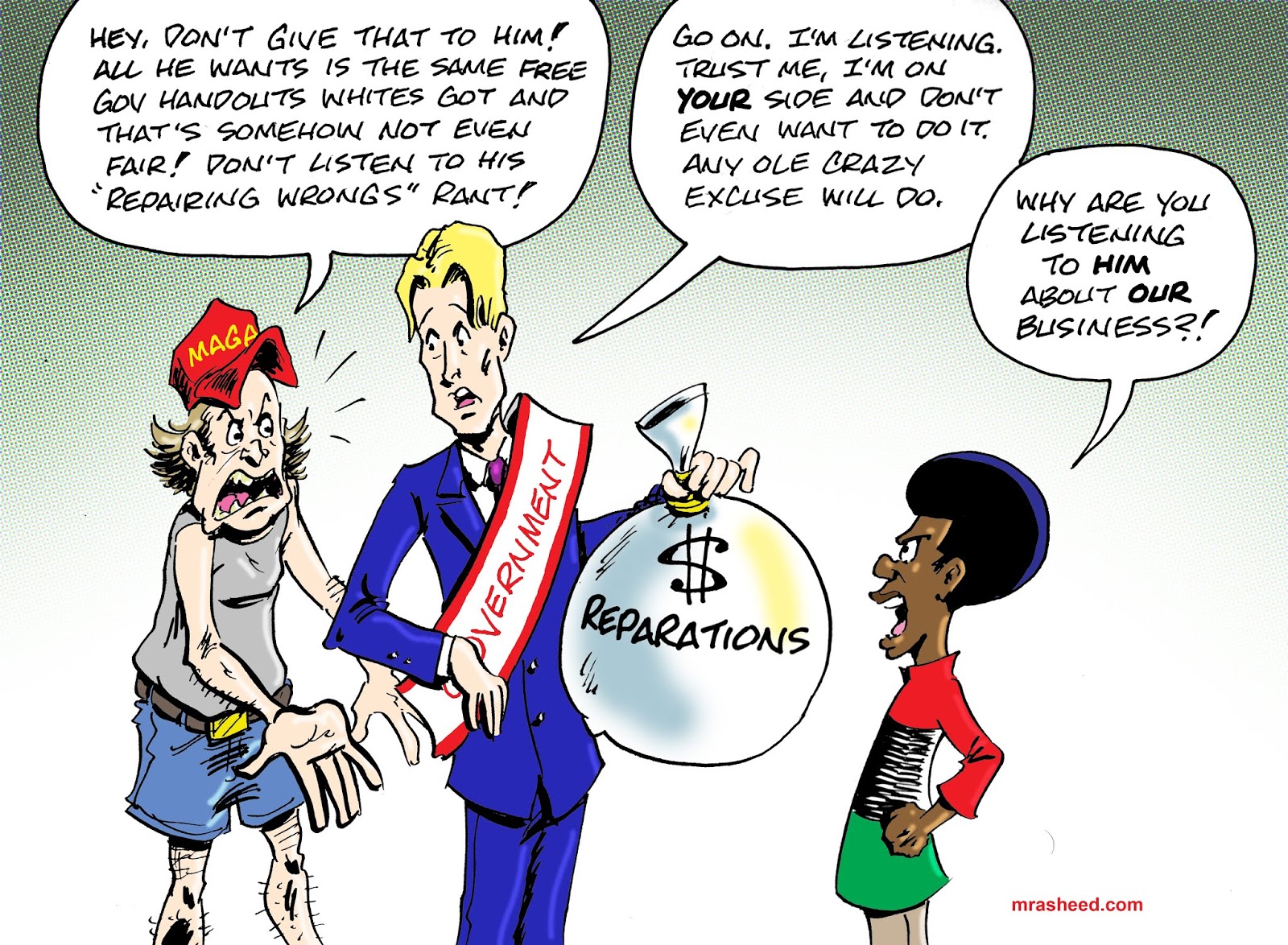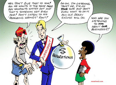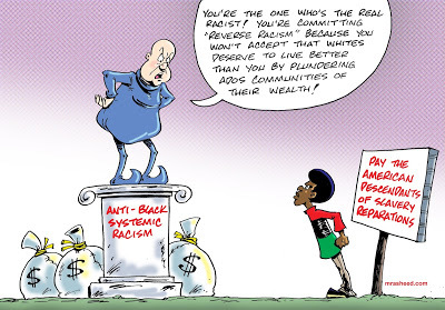 When in use, the “reverse racism” card is put into play solely to steer Black anti-racism activists away from the obscene and highly lucrative anti-Black systemic racism that fuels the white racist aristocracy, and when successful, causes the activists to waste time jumping through ‘moving the goalpost’ hoops.