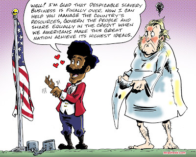 Rasheed, Muhammad. "Savagely Conquered Fair and Square." Cartoon. The Official Website of Cartoonist M. Rasheed 10 Jul 2019. Pen & ink w/Adobe Photoshop color.