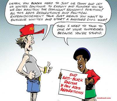 Muhammad Rasheed - The “reverse racism” charge is a tactic used by white people in their defense of white supremacy. Composed of flimsy false equivalency and ‘Whataboutism’ logical fallacies, as well as attempts to divorce the meaning of ‘racism’ from its economic and systemic purpose and primary function, the use of the phrase is confined to deceptive misdirection.