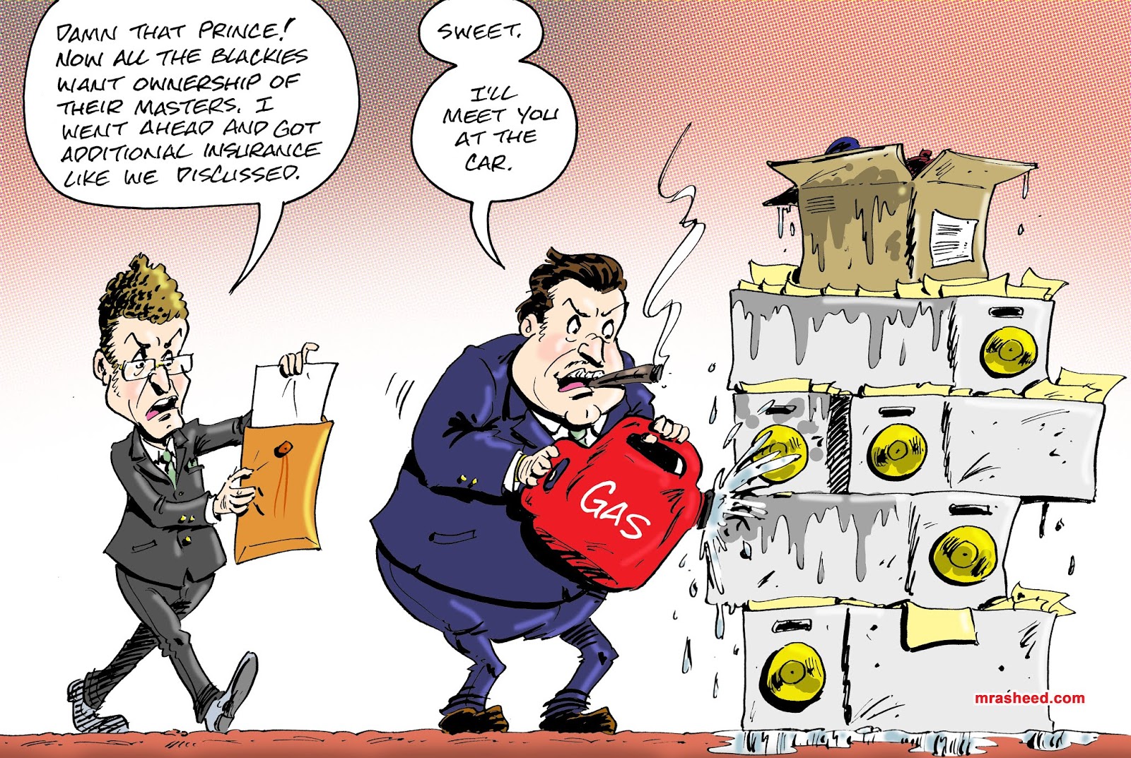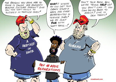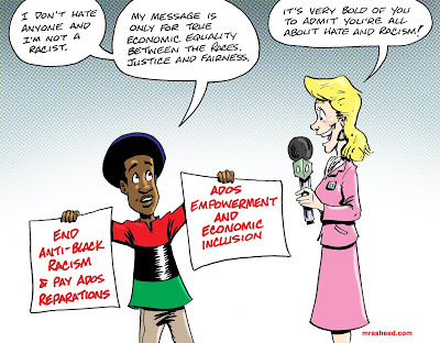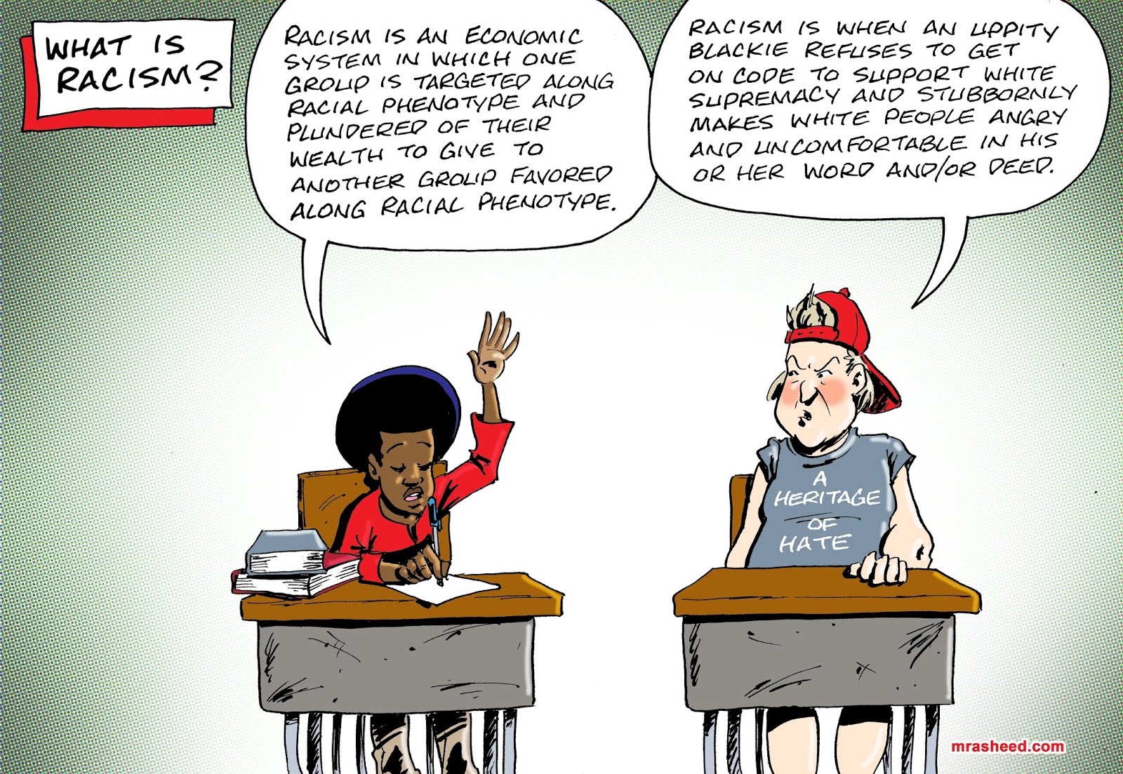 Rasheed, Muhammad. "Anti-Black Labeling to Protect the Status Quo." Cartoon. The Official Website of Cartoonist M. Rasheed 21 Jun 2019. Pen & ink w/Adobe Photoshop color.