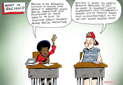 "Racism" is an artificially-induced economic imbalance caused by one group unfairly exploiting another by targeting and rewarding along racial phenotype profiles. Chronic poverty for the exploited group is the result, and it will end by dismantling the systemic racist machine and closing the wealth gap with Reparations.