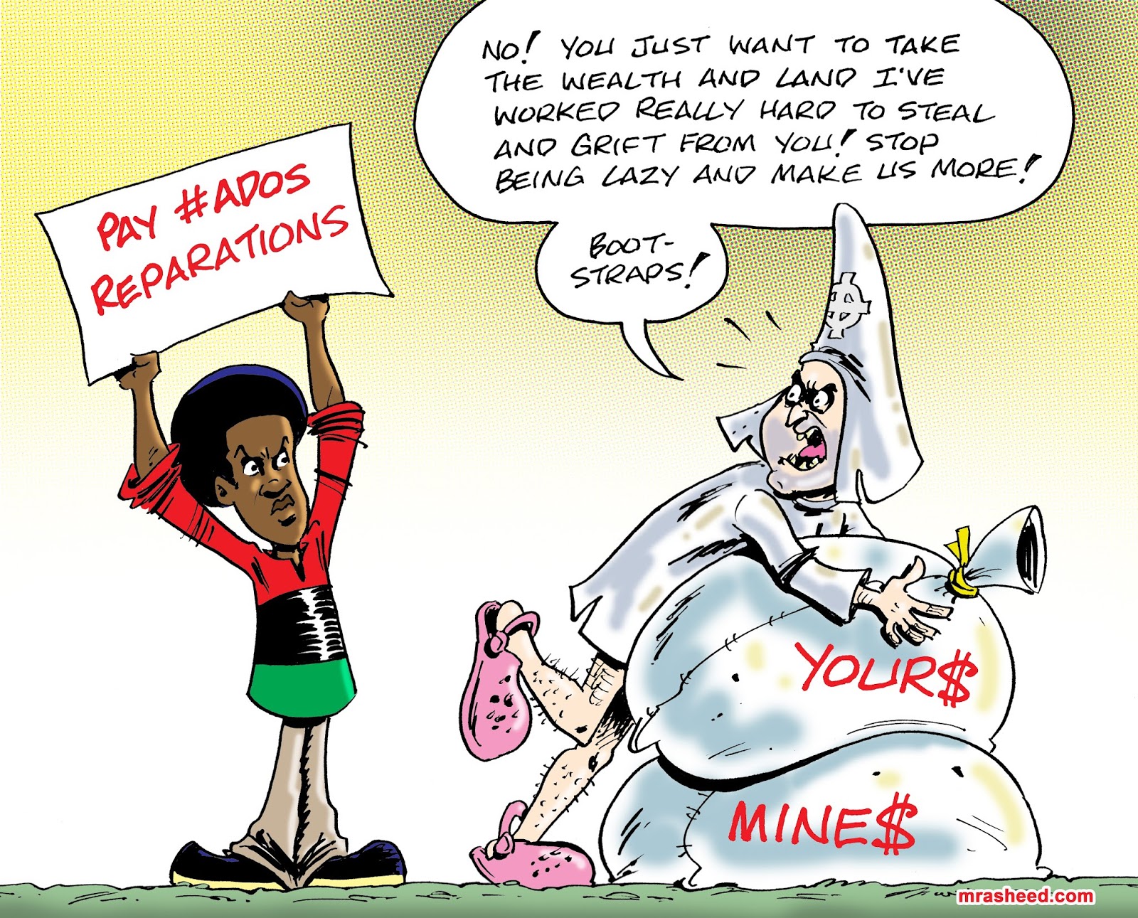 The Questioner gives the impression that all the hard work of eradicating anti-Black systemic racism should be skipped in favor of a meaningless show performance of Black people “getting along” with white people on a shallow surface level — like those two distinct class groups of slave era babies — and that will mean that Dr. King’s dream will have been achieved. This is not realistic and it completely misses the entire point of Dr. King’s jim crow era mission, which was to free the American Descendants of Slavery (ADOS) from the systemic racism that exploited and plundered them and eradicate the white supremacist-fueled poverty that gripped their communities by paying the long over-due Reparations in wealth and land grants they were owed.