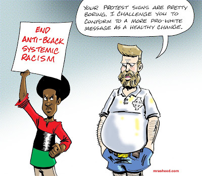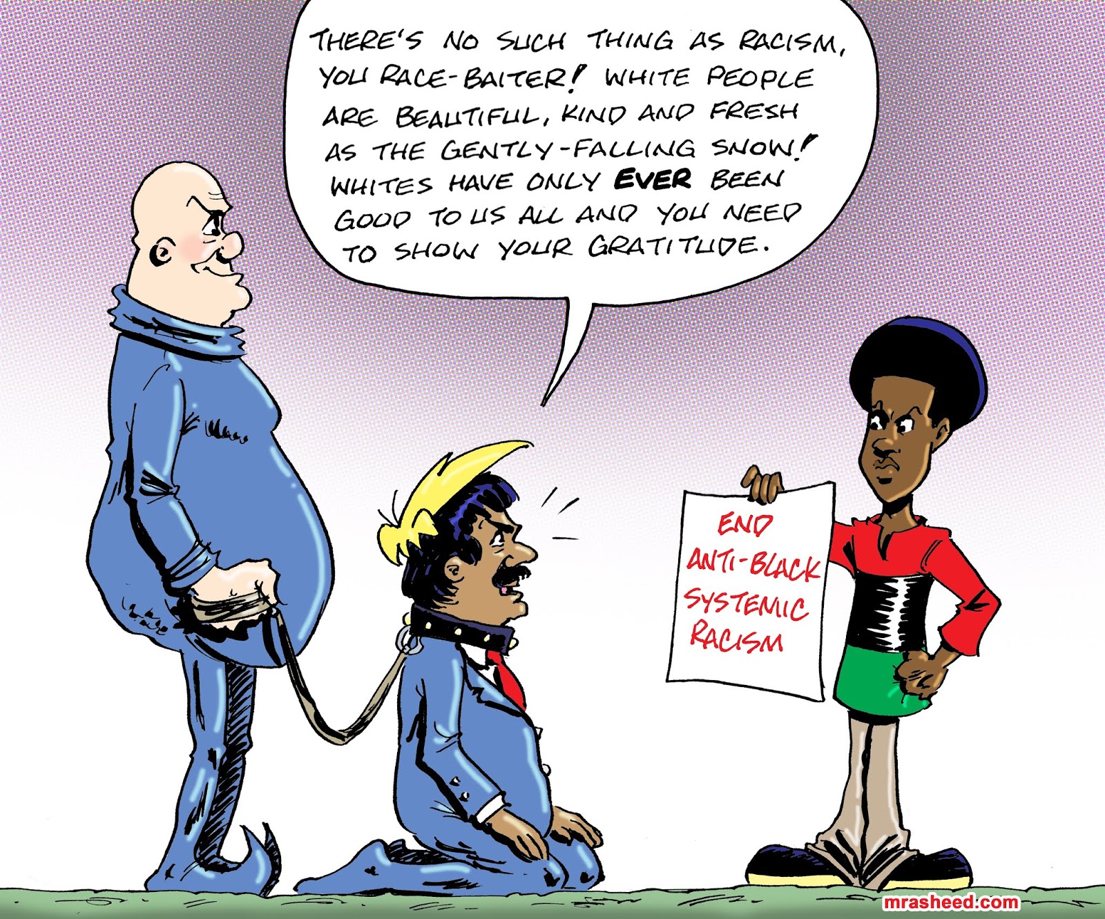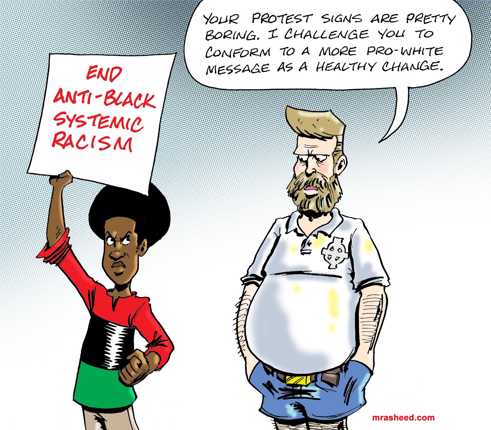 Rasheed, Muhammad. "A Legacy Boost of Racism." Cartoon. The Official Website of Cartoonist M. Rasheed 13 Jun 2019. Pen & ink w/Adobe Photoshop color.