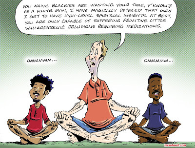 Muhammad Rasheed - TRANSLATION: “Everyone who is not a white man experiences delusions of schizophrenia when they claim third eye events, but my inner eye experiences are legitimate high-level spirit interactions because I’m a white man and I said so.”