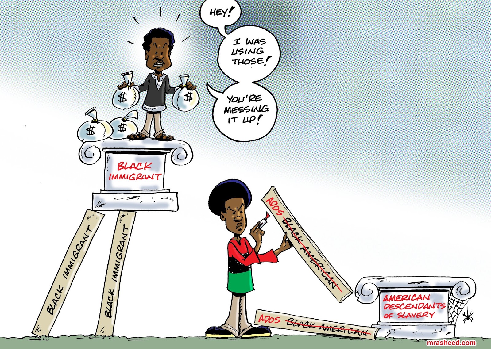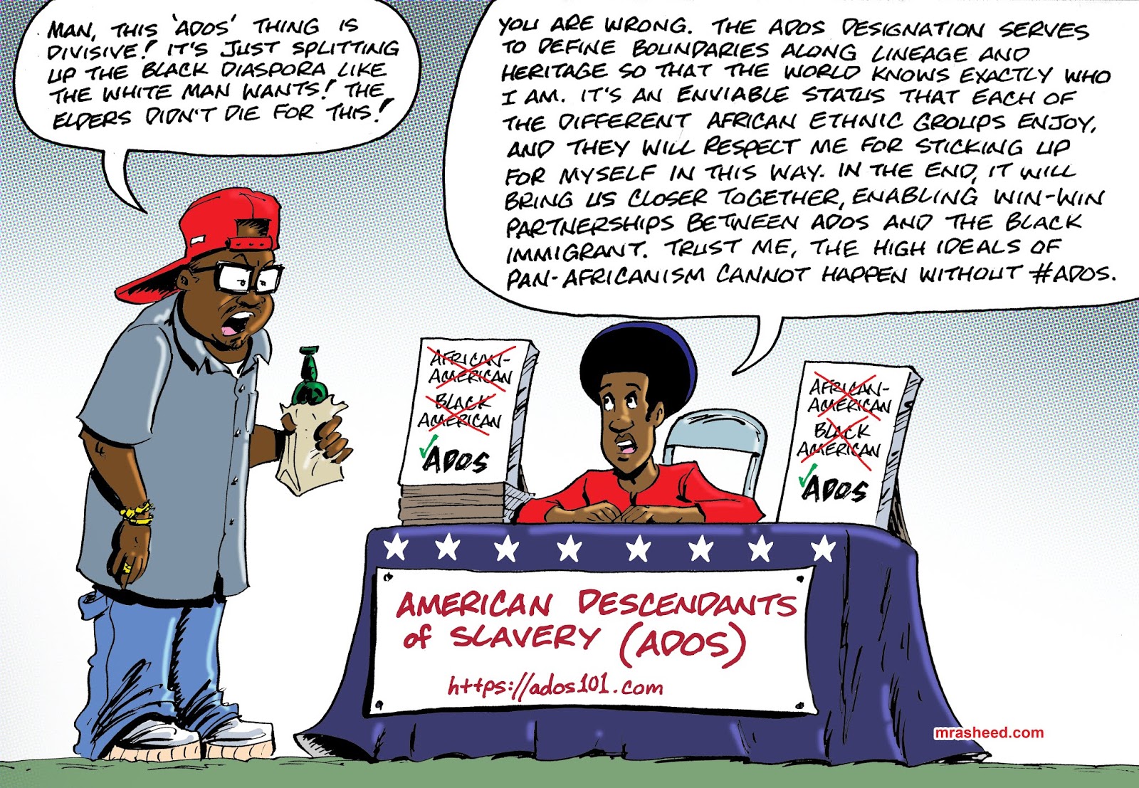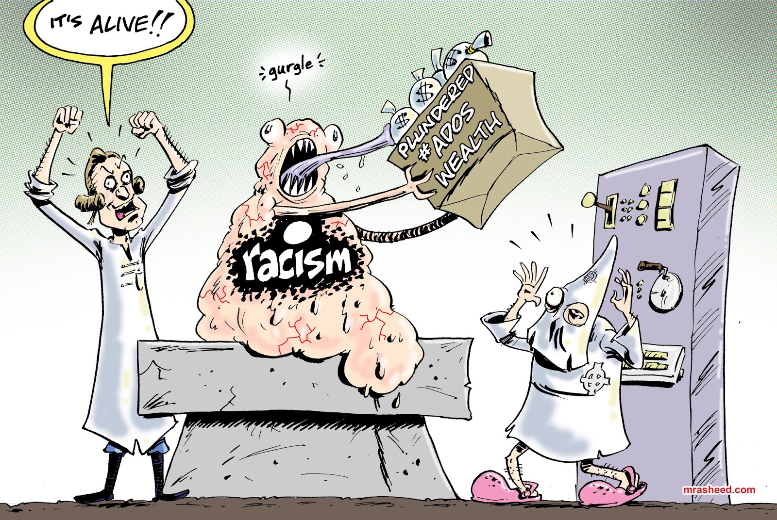 Rasheed, Muhammad. "ADOS Lives Matter." Cartoon. The Official Website of Cartoonist M. Rasheed 06 May 2019. Pen & ink w/Adobe Photoshop color.