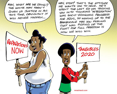 Muhammad Rasheed - By its nature the payout of Reparations comes with the dismantling of anti-Black systemic racism. It's "all I want" along with all that the formal payout implies and acknowledges. It will set an expensive precedent and represent the beginning of the end of white supremacy.