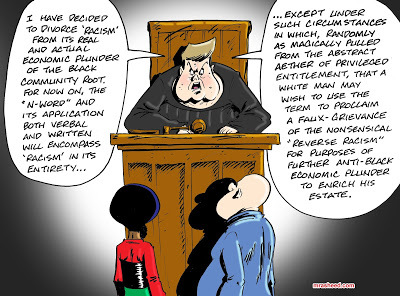 While on the conservative side, the Republican Party gleefully seeks to take advantage of the liberal schemes by piggy-backing on the ideal that if the ‘n-word’ IS ‘racism, then surely can can use white-targeted racial slurs to pretend their nonsensical “reverse racism” partisan rhetoric is real. This will enable cunning conservatives to secure anti-racism benefits designed for exploited Black people similar to how they usurped the First Nations’ Black Freemen Reparations with their old “$5 Indian” Dawes Rolls grift scheme.