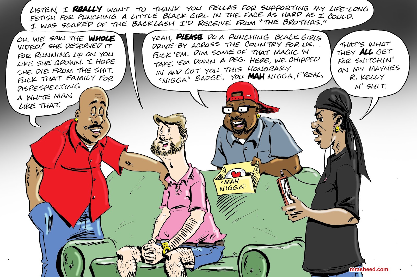 Muhammad Rasheed - There's a certain type of individual who is so comfortable in his role as a beneficiary of a system designed to primarily benefit him, that he believes that to defend that system is the only logical and right thing to do. This is certainly reflected within the actions of the bi-partisan white male and his staunch defense of the White Supremacist Ideology and the anti-Black systemic racism for which it stands, but it also represents the Black male, who for some retarded reason has taken full ownership of the white man's specific brand of toxic patriarchy for his own use.