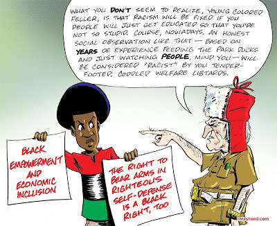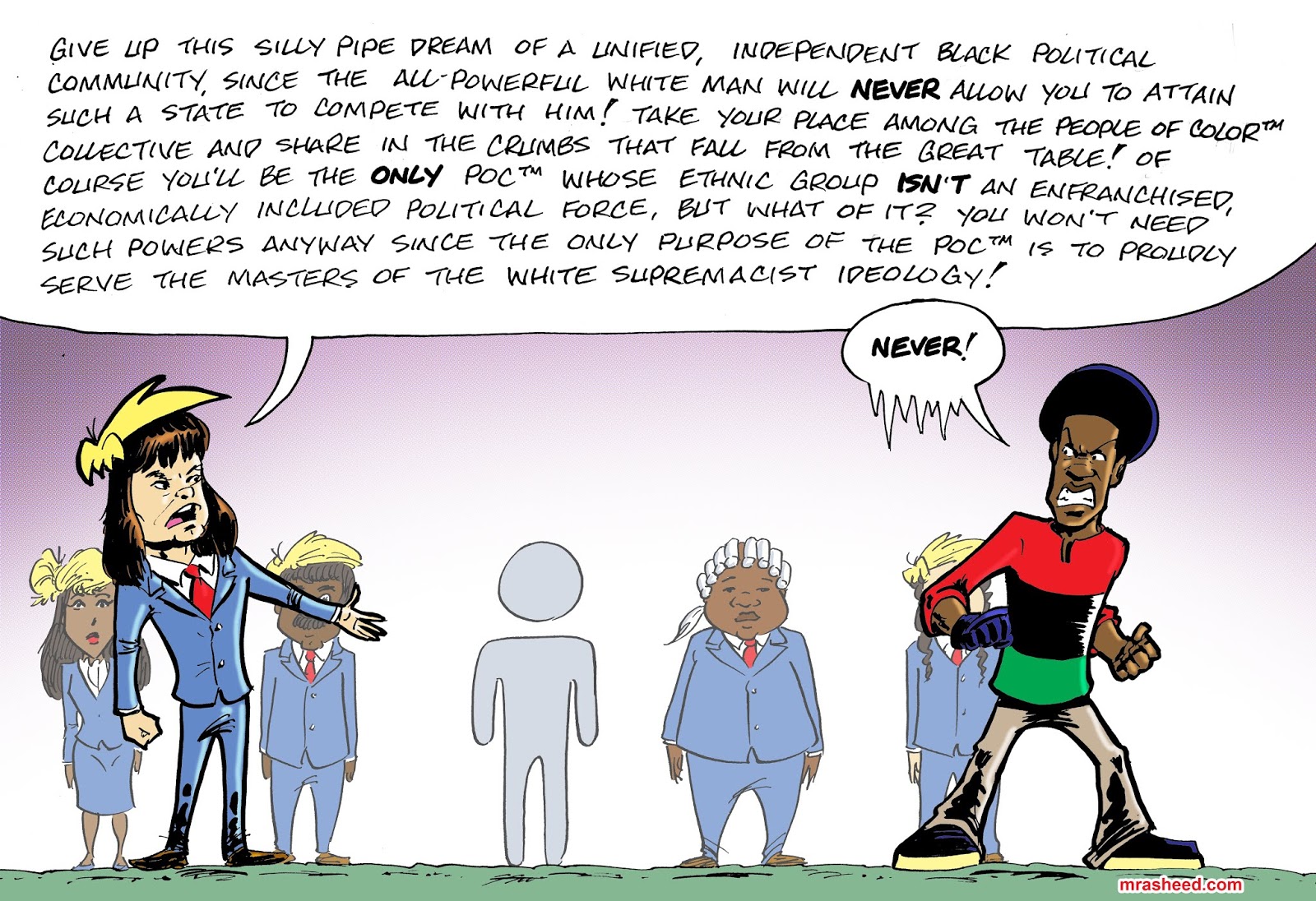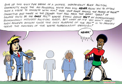 "In exchange for you giving up all dreams of full Black empowerment, the financial freedom of entrepreneurship, economic inclusion and political enfranchisement, the white liberals will instead provide for all the Black American's needs in the form of free government funds and housing through liberal socialist programs. It will be a Win/Win situation--help us by allowing us to help you! We'll show the whole world that capitalism is wrong and socialism is the way to solve the world's problems!"