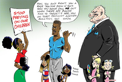 Of course the gullible and treacherous heirs to the assassinated Black leaders' positions 100% agreed to this scheme, and the 'Assimilated Integrationist Token" era was born. The fruit of this era is, as promised, the complete disunification, economic exclusion, disenfranchisement and chronic poverty of the Black American ethnic group. As their wealth is continuously plundered to maintain the white racist aristocracy, the best & brightest tokens among them (famous for working 3-to-5 times harder than their white colleagues!) use their talents to help further the socio-political goals of white people.