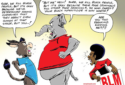 I'm a conservative Black American Muslim who believes in civil rights for my ethnic group, so that leaves me with the problematic liberal/Democrat team since the conservative/Republicans hate my f*cking guts because I'm Black. It wasn't the "Trump vs Hillary" election that represented the "lesser of two evils" choice, but both political parties period.