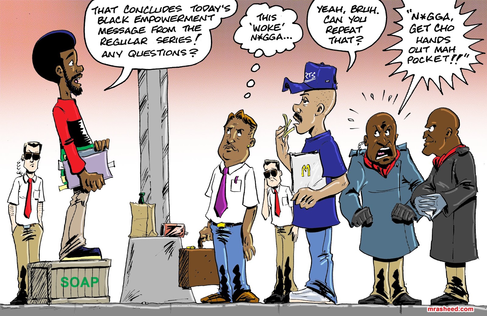 Those who see the entire political machine as a set-up by diabolical white people to trick them; a grift that was never, ever intended for Black people to take part in, so they may as well live in a lawless anarchy state.Other than the ignorant and cowardly fourth bullet, all the rest will still require Black people to use money, unity among all class and ideologies across the Black Nation and massive action using the four core tools needed for achieving enfranchisement and ultimately Black Empowerment: