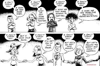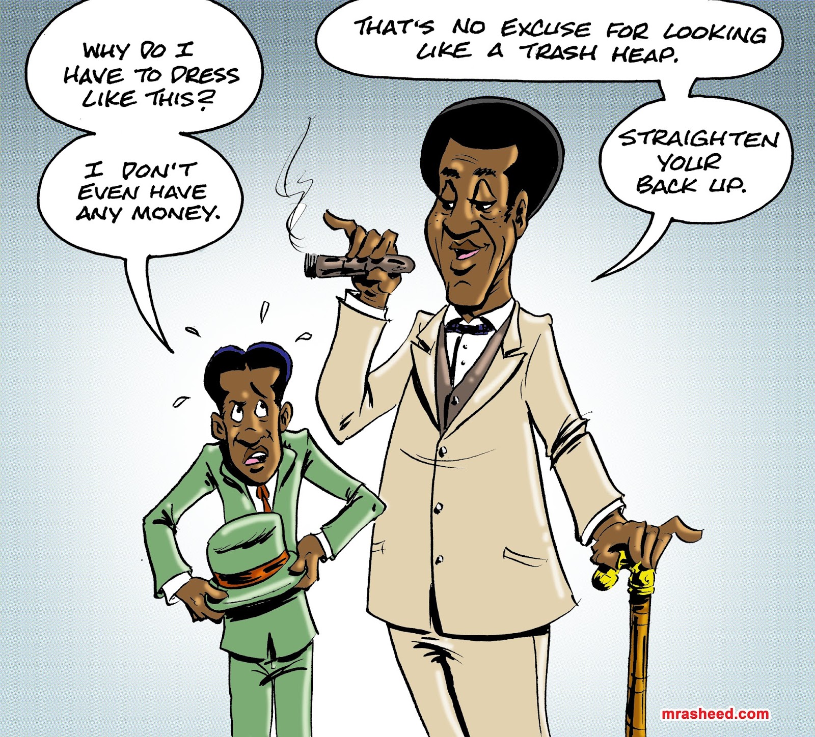 I’m amused that everybody acts like Cosby was the one that made that stuff up, when in actuality, he was just the mouthpiece of his socio-economic class. The Black Bourgeoisie Elite have been talking that way since the slave era. As harsh as it sounds in the 21st century—especially when uttered by a salty old curmudgeon Black comedian irritated that he can no longer see his lawn to fuss at you about walking on it—it’s pretty harmless. Basically it’s just a call for the lower classes to take the challenge and rise to the Black Excellence Standard, talk we were all used to hearing from the elite before the ‘Integration Era’ began, back when all of our socio-economic classes had to live together to survive jim crow. Note that in those days, the average lower class Black person was suited up and well-groomed, and the poor weren’t permitted to have their own class distinctive style. “We’ll all rise up together!” was the motto of the times, and now that the poorer neighborhoods have been abandoned, caused by the ‘Integration Era' class segregation, there were no Black Excellence figures around to keep the people to the standard...
