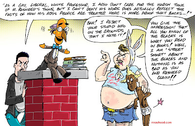 Rasheed, Muhammad. "[DECODED] Intellectual Dark Web 'Fixes' ADOS Neighborhoods." Cartoon. The Official Website of Cartoonist M. Rasheed 07 Oct 2022. Permanent marker w/Adobe Photoshop color.