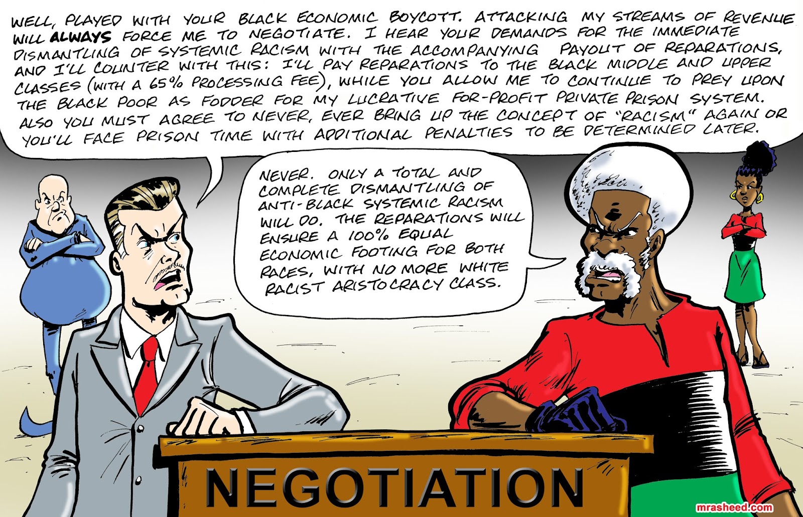 Muhammad Rasheed - Hatred is part of the propaganda that supports anti-Black systemic racism. Racism is extremely lucrative as it has fueled the hoarded great wealth of the West, so in order to keep that obscene gravy train going, the people who manage and maintain the system needed to be indoctrinated in a hate mentality—White Supremacist Ideology—to help them justify in their own minds why it’s okay to do this to people.