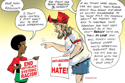 Freeman’s faux cure-all will serve only to direct all attention away from the reality of the white racist exploitation of Black people, to give the very false impression that racism is only composed of shallow “skin color” prejudices on the individual level. This will enable the white racists to continue to exploit Blacks unopposed, while all official anti-racism programs impotently go after “implicit bias” and other paint-thin, surface-level foolishness.