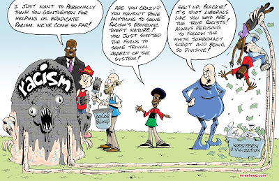 Racism is composed of the systemic, institutionalized economic exclusion of Black people, exploiting and plundering them to feed the white racist aristocracy, which creates the infamous and ever-widening wealth gap. The dictionary definition of racist/racism merely describes the most common usage of the terms, but not the system itself. The most common usage of the terms comes primarily from the white working class who use the words to refer—not to the political and economic disenfranchisement of Blacks—but to their own resentments and hatreds directed towards Blacks as a class.