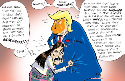 Chuck Hammond - Besides skewing the truth the very fine people who brought the KKK and the JIM CROW Laws to you and your kind were both died in the wool racists and Democrats. The Dixiecrats were the more enlightened version of future members of the GOP. Social Democrats, Democrats and Sociatry lists historically have alway been the base from which Hitler, Mao and Stalin types emerged. I suggest you improve your knowledge of these movements before you spot off. Not sure if I like your cartoons or not. The Graphics are great but you are often too wordy. You might remember the old adage "Less Is MORE".