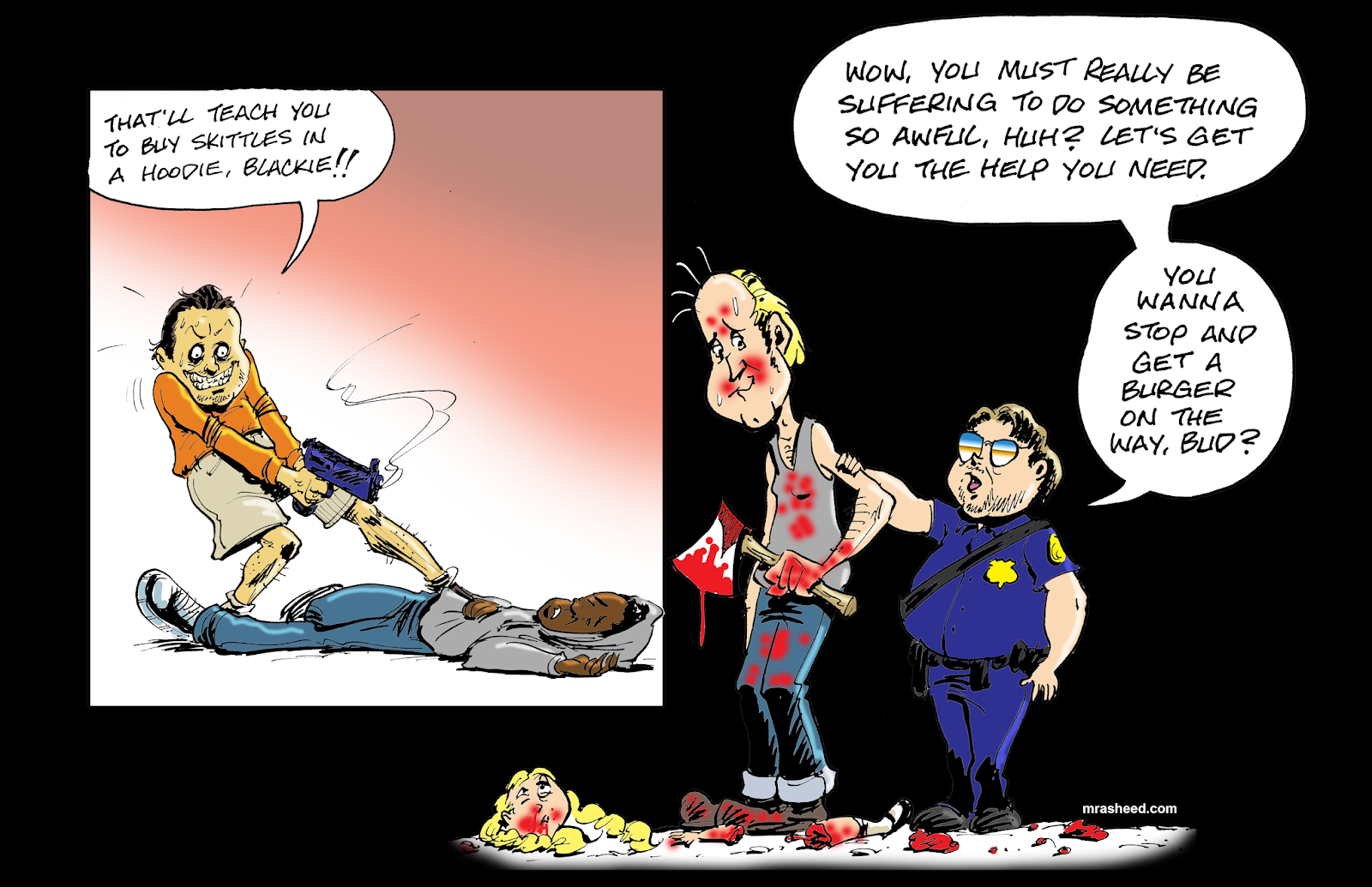 Muhammad Rasheed - Hmm. Hey, how come when Black people are convicted of small crimes trumped up by cops that they often didn't even do, just the 'former convict' label is enough to follow them forever and ruin their lives, but when whites commit even the most heinous crimes ever, the system bends over backwards to forgive them and allows them every single opportunity to prove that they didn't REALLY mean to be bad?
