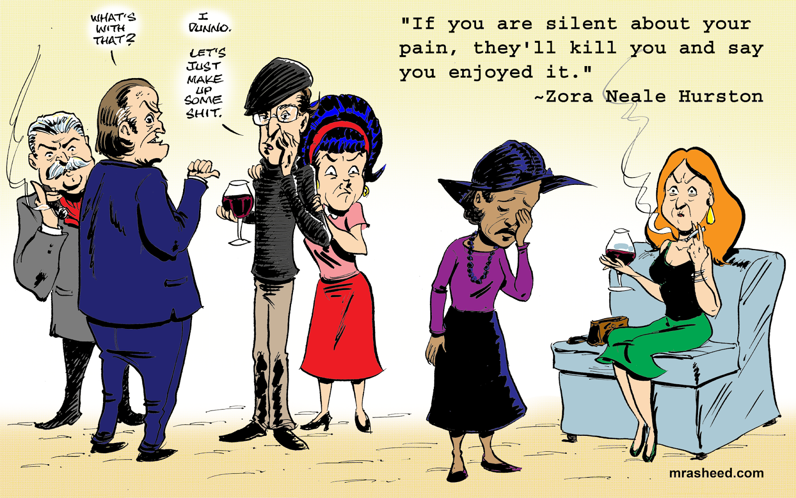 Muhammad Rasheed - This Zora Neale Hurston quote is the concept behind why whites get mad when you protest the injustice inflicted upon you, and why they conspired to destroy Black-owned media. They hate the competing voice that contradicts how they want to spin the tale of what "really" happened. You NEED to tell your side of what happened, you NEED to filter the data through your lens of experiences, and you NEED to push back when their version of events is in violent opposition to what you know happened. They don't want you to fight back ("uppity"), and they get angry when you do.