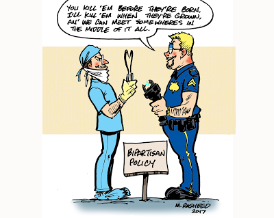 Muhammad Rasheed - No, this one is just focused on the terror-lynchings of cop killings compared to the medical industry's ongoing reaping of (FREE!) foetal tissue from the Black community. Both represent the support of the murder of Black bodies, and it is definitely a bipartisan support despite the song & dance of the liberal vs conservative teleplay.
