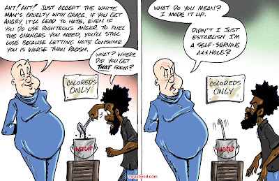 Rasheed, Muhammad. "Disaggregate 'African-American' So the Truth Will Be Laid Bare." Cartoon. The Official Website of Cartoonist M. Rasheed [date pending]. Permanent marker w/Adobe Photoshop color.