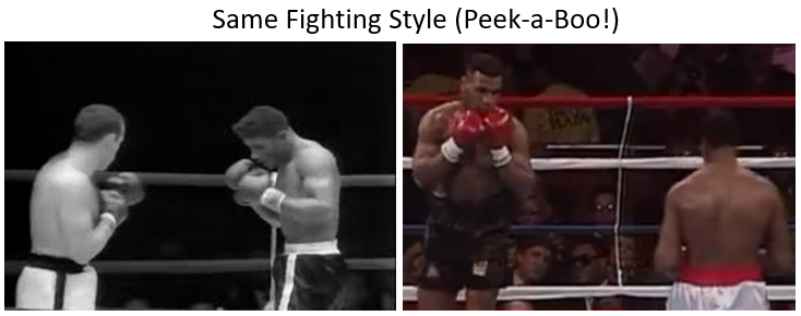 Okay, so it wasn’t REALLY Tyson that he fought, but it was close enough. You can consider the young Floyd Patterson to be a nearly identical, proto-Tyson. Both Tyson and Patterson were small for heavyweights, as well as known for being very quick for their size. Even though Tyson has the reputation for being a ‘dynamite’ knockout artist, they both had devastating KO power in either hand.