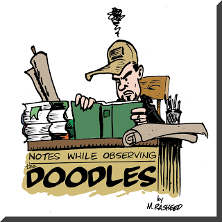 As a cartoonist at heart, I tend to build up stacks of doodles while doing pretty much anything. No stray piece of paper is safe. Consequently there are quite a bit of informal cartoons laying around, illustrating whatever is on my mind at any given time, in various stages of roughness. I've decided to start posting my favorites of these otherwise unseen/unpublished drawings within this blog. I'll be adding to it relatively regularly so make sure you peek back here often to check out the new additions.